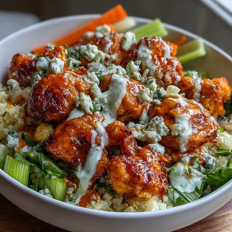 Pin This I discovered this bowl on a Tuesday afternoon when my meal prep plans collided with a craving for something spicy and substantial. My kitchen was stocked with chicken and cauliflower, but what really caught my attention was the half-empty bottle of buffalo sauce sitting in the fridge—leftover from wings night. Something clicked: what if I built an entire bowl around that tangy heat, layering it with crisp vegetables and a cooling ranch drizzle? The result was so satisfying that I've made it nearly every week since, tweaking it slightly depending on what's in my vegetable drawer.