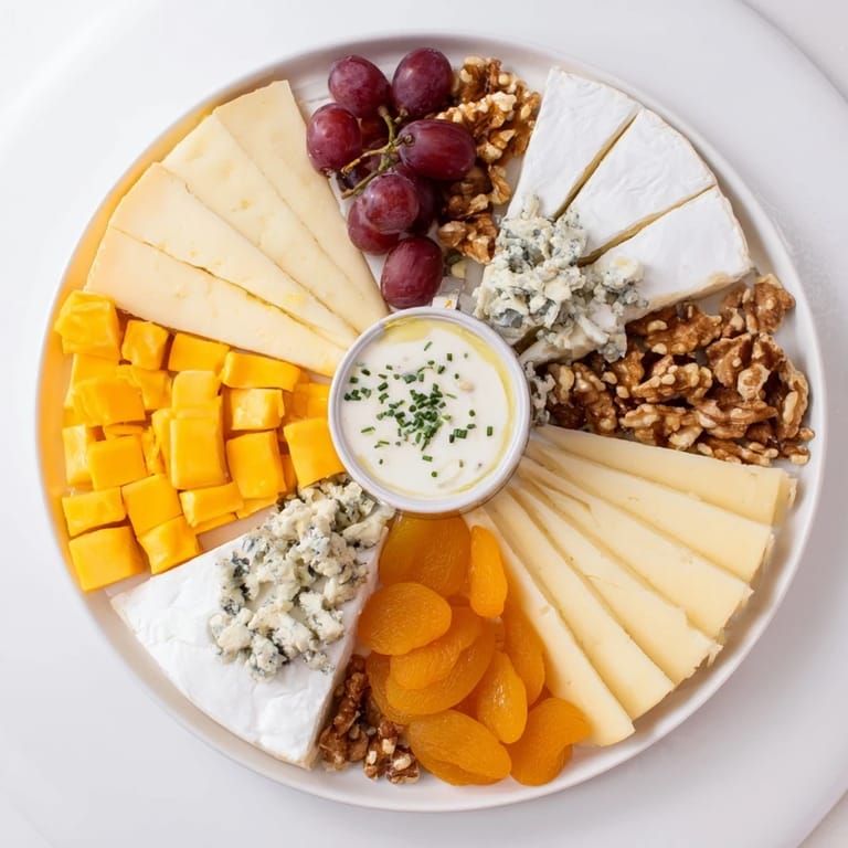 The magic happens in the little touches: lightly toasting the walnuts adds depth, using a sharp cheese knife to slice the Brie cleanly (rather than a regular knife), and arranging everything on a platter that's been brought to room temperature so the cheese doesn't sweat. People notice these things, even if they can't quite name what you did differently. If you have time, create visual lines between the quadrants using a trail of nuts or a neat row of apricots—it reinforces the cross pattern without being heavy-handed.