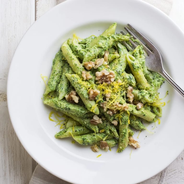 Pin This The first time I made this vibrant green pasta, my roommate walked into the kitchen and asked if I was serving something radioactive. Then she tasted it and immediately asked for the recipe. That electric color comes from blending handfuls of fresh spinach with toasted walnuts until the sauce turns this impossibly bright, velvety shade that coats every strand of pasta.