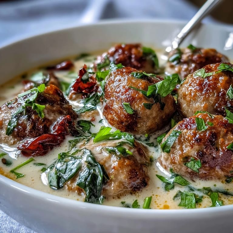 - Pour in chicken broth and scrape the bottom of the pot with a wooden spoon to lift all those browned bits—that's where flavor hides. Once it simmers, return the meatballs and add sun-dried tomatoes and Italian herbs, then let it bubble gently for 12 to 15 minutes.