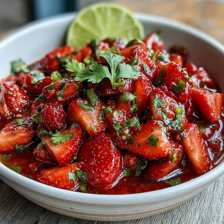Pin This This salsa is proof that simple ingredients can create extraordinary flavor. The natural sweetness of ripe strawberries provides a perfect canvas for the bright acidity of fresh lime and the subtle kick of jalapeño. Red onion adds a pleasant sharpness, while cilantro brings its signature herbaceous note. The optional avocado lends a luxurious creaminess that ties everything together. Whether you're grilling fish, assembling tacos, or simply looking for a refreshing dip, this Mexican-inspired salsa delivers big flavor with minimal effort.