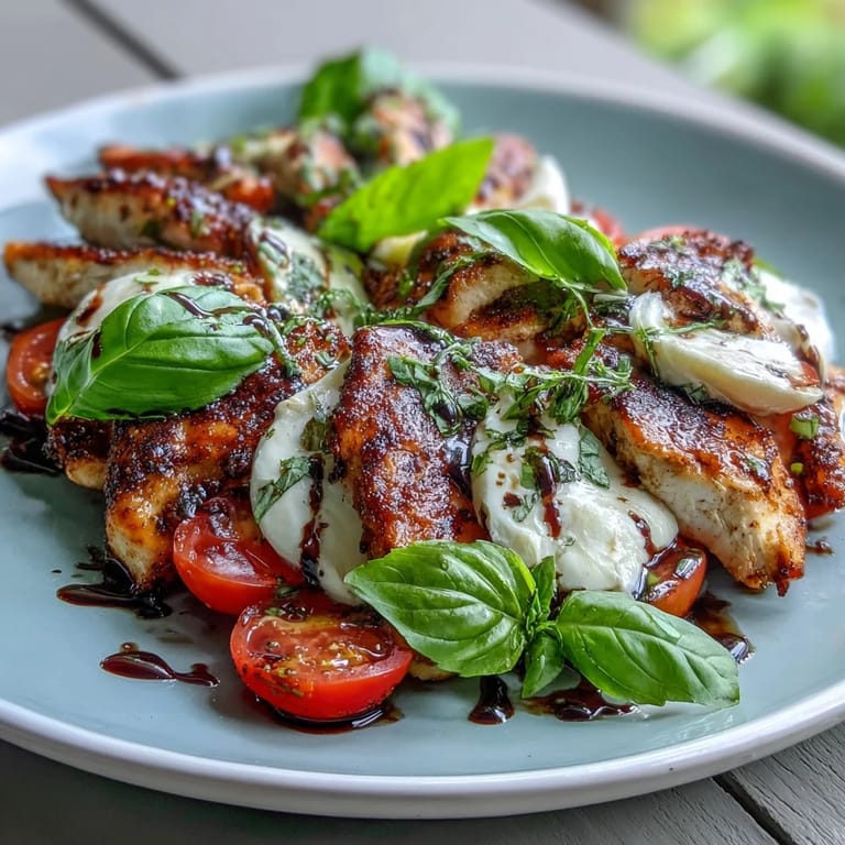 Pin This My neighbor handed me a tomato last August that was so perfectly ripe it felt warm in my palm, and I knew immediately what I had to make. That first time I combined the grilled chicken with fresh mozzarella and basil, watching the balsamic glaze turn glossy and dark on the stove, something clicked—this wasn't just a salad, it was a moment. The plate came together like a painting, and I realized this dish had quietly become my answer to those hot evenings when cooking feels less like a chore and more like an act of celebration.