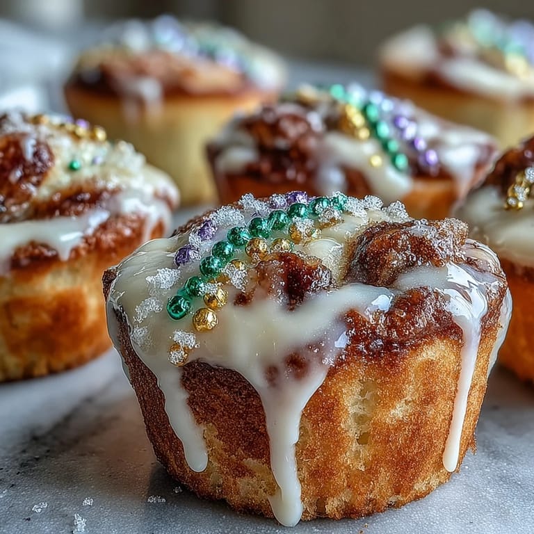 Pin This My neighbor showed up at my door one February afternoon with a box of King Cake she'd brought back from New Orleans, and the moment I bit into that tender, cinnamon-swirled bite, I was hooked. There's something magical about how the spices hit first, followed by that subtle sweetness, all wrapped up in something small enough to pop in your mouth without guilt. That night, I couldn't stop thinking about recreating it in miniature form—something you could grab by the handful at a party, something that felt celebratory but didn't demand a fork and plate. These little cupcakes became my answer, and now every Mardi Gras season, my kitchen fills with the smell of cinnamon and anticipation.