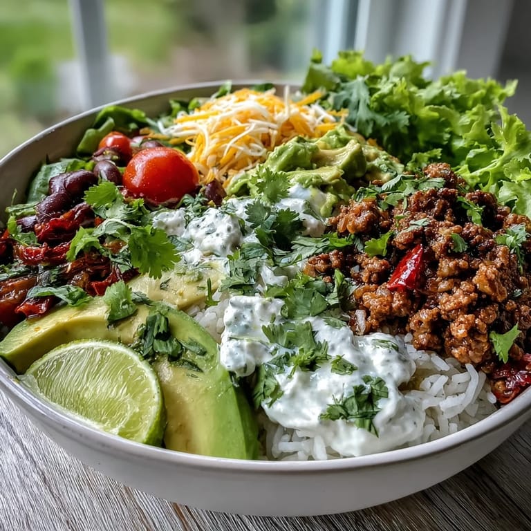 The genius of a taco bowl lies in its balance—you've got protein, vegetables, healthy fat, and carbs all in one place, but nothing fights for dominance. The warm turkey and rice create a grounding base, while the fresh toppings add brightness that keeps every bite interesting. It's satisfying enough to feel like a real meal but light enough that you don't feel weighed down afterward.