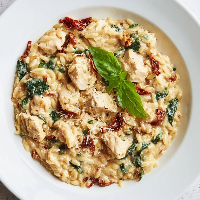 Last winter, my friend Sarah came over feeling completely drained from work. I made this orzo while she curled up on my couch with a glass of wine, and by the time we sat down to eat, she said it was exactly what she needed. There's something about the combination of tender chicken, creamy sauce, and those bursts of sun-dried tomato brightness that feels like being hugged from the inside out. We ended up talking for hours over empty bowls, and now she requests this dinner every time she visits.