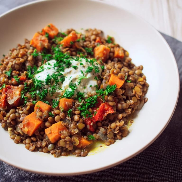 Pin This A comforting, rustic one-pot meal featuring nutty whole wheat berries, tender lentils, and a richly spiced tomato curry. Perfect for a wholesome, warming dinner.